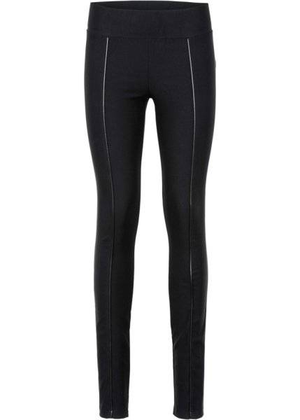 Стильные зауженные брюки марки BODYFLIRT. Спереди по центру обеих брючин полоска из искусственной кожи, придающая образу современный шик и элегантный вид. Пояс на резинке. Длина по внутреннему шву ок. 77,5 см (разм. 38).