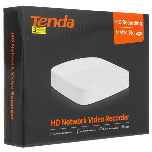 IP-видеорегистратор Tenda N3L-4H в компактном белом корпусе позиционируется как центральный компонент для небольшой системы видеонаблюдения, которая объединяет до 4 сетевых камер. Устройство с поддержкой 4 параллельных каналов записи может записывать видеофайлы в разрешении до 3840x2160 пикс. Для сохранения видеофайлов доступны кодеки H.264, H.264+, H.265 и H.265+, а наибольшая поддерживаемая частота кадров составляет 30 к/с. Модель допускает старт записи в автоматическом режиме или по сигналу тревоги с датчика. Видеорегистратор для IP-камер видеонаблюдения Tenda N3L-4H подключается к локальной сети через Ethernet-порт с поддержкой скорости передачи данных до 100 Мбит/сек. В качестве модуля долговременной памяти устройство использует SATA-диск объемом до 10 ТБ. Для вывода изображения с камер регистратор предлагает видеовыходы 1x HDMI и 1x VGA, к которым можно присоединить монитор.