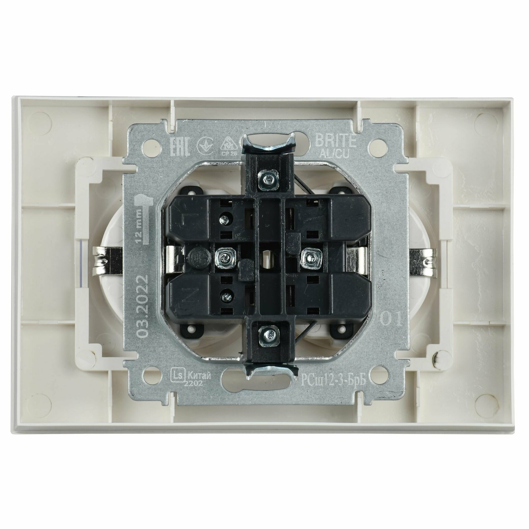 **Розетка IEK Brite РСш12-3-БрКр** — двойная встраиваемая модель с заземлением и штторками. Оснащена защитными шторками и крышкой, отличается высоким уровнем влагозащиты. Изготовлена из прочного пластика, не поддерживающего горение. Предназначена для установки в стены и панели.