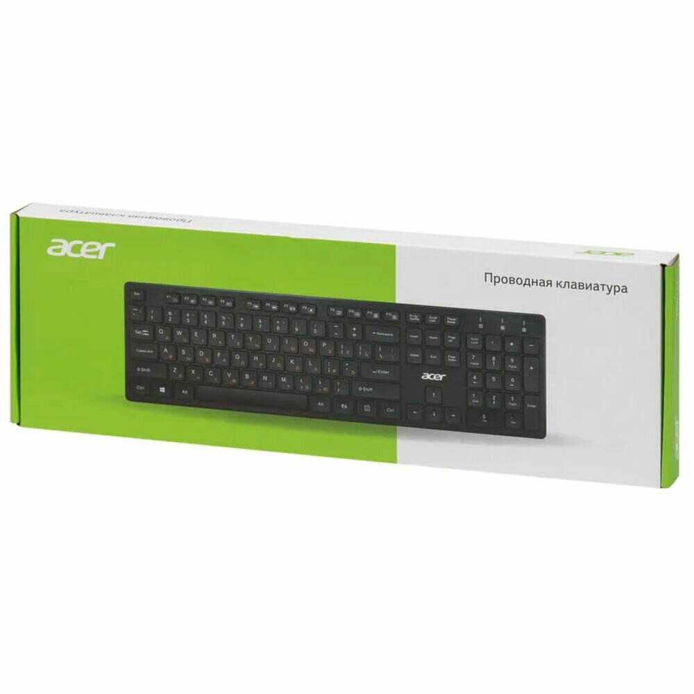 Клавиатура Acer OKW122 – это полноразмерная 104-х клавишная клавиатура. Надежность ей гарантирует внушительный ресурс нажатия клавиш до 10 млн. Клавиатура Acer OKW122 оснащена 12 мультимедийными клавишами (комбинации Fn + F1-F12): с их помощью можно быстро настраивать яркость монитора, открывать браузер, подключать или отключать внешний монитор и многое другое. Особенностью клавиатуры является ноутбучный профиль клавиш. Это минимизирует шум при печати и делает набор текста более плавным: для нажатия клавиши достаточно легкого касания.