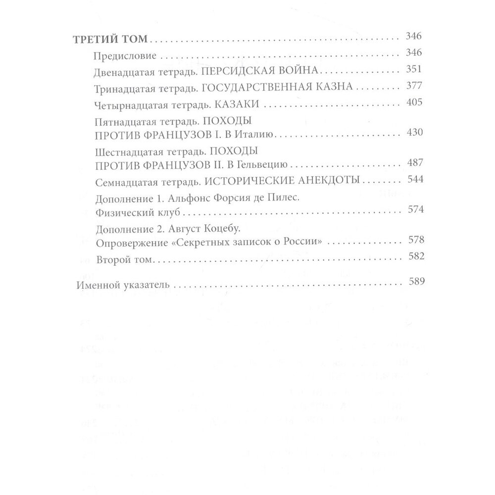 Полный перевод основной части книги, т. е. всех 3 томов, изданных в 1800 и 1802. От первого перевода сильно отличается. Исправлены многие неточности, восстановлены изъятия и даже стихи, которые опубликованы как стихи, а не проза. Текст немного стилизован под эпоху, что не мешает его понять. Очень интересные материалы о Суворове и войнах против Франции. В комментариях публикатора много дополнений. Но разочаровывает немалое число издательских огрех. Открываешь книгу и уже видишь 17 век вместо 18. Описки, непонятное выделение текста. Хотя это искупается содержанием. Хороший подбор иллюстраций. Многие опубликованы, видимо, впервые и с точными аннотациями.