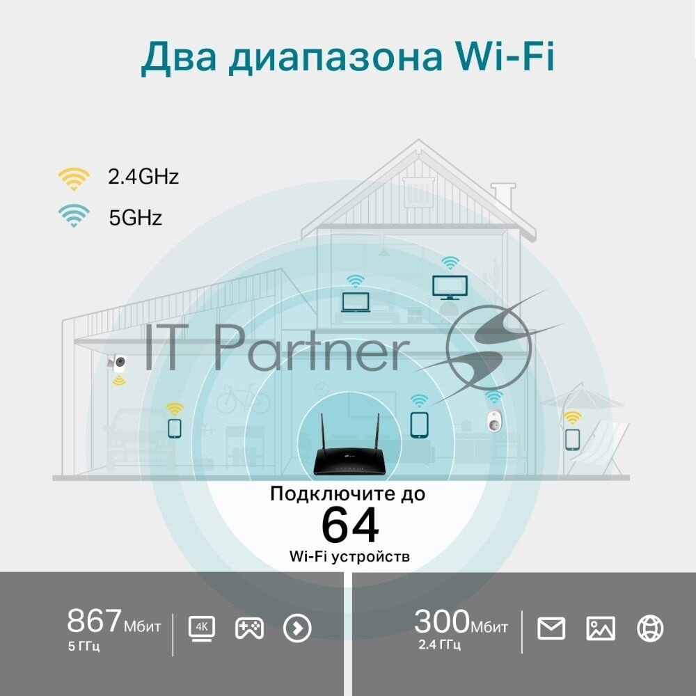 Беспроводной маршрутизатор TP-LINK Archer MR500 802.11aс 867Mbps 2.4 ГГц 5 ГГц 3xLAN черный