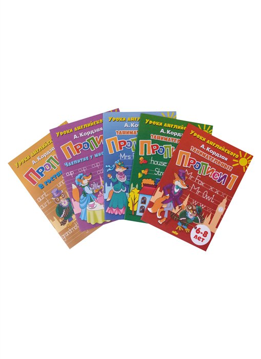 Вашему вниманию предлагается комплект из 5 прописей: Уроки английского: Занимательные прописи 1,2,3. Чаепитие у миссис Лис. В гостях у сов. Для детей 6-8 лет.