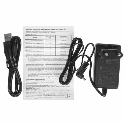 Внешний жесткий диск 8TB Silicon Power Stream S07, 3.5", USB 3.2, адаптер питания, Черный