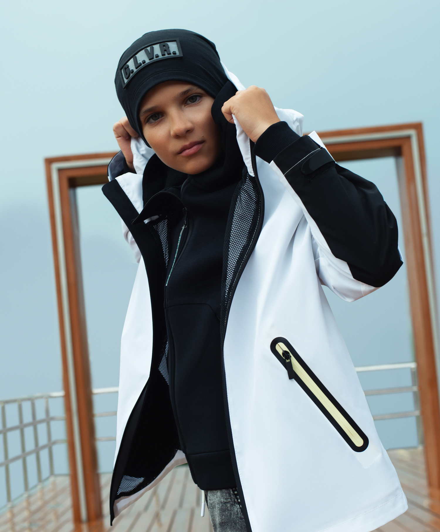 Белая ветровка, выполненная из плотной матовой плащовки на подкладке из сетки, - яркий интересный вариант, иллюстрирующий стиль, характер и настроение мальчика! Дизайн модели построен на цветовом контрасте материала и отделки, крупных деталях, актуальной свободной форме и динамичных конструктивных членениях. Спортивные элементы: эластичные манжеты, тонкие литые молнии, оформленные печатным кантом, а также крупные шрифтовые принты в оформлении делают ветровку главным стилеобразующим элементом модного энергичного образа мальчика. В декоре изделия использованы светоотражающие детали, способствующие безопасности подростка в темное время суток.