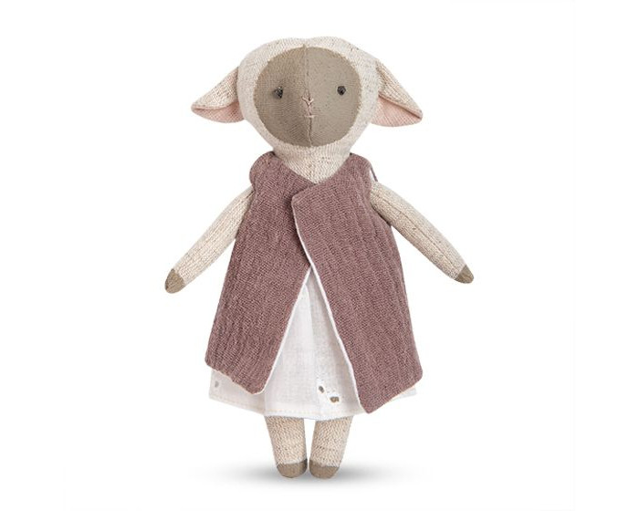 Забавная маленькая овечка София - старшая дочь в семье игрушечных овец. В комплекте с ней есть постельное бельё и джутовая корзинка-кроватка для переноски.