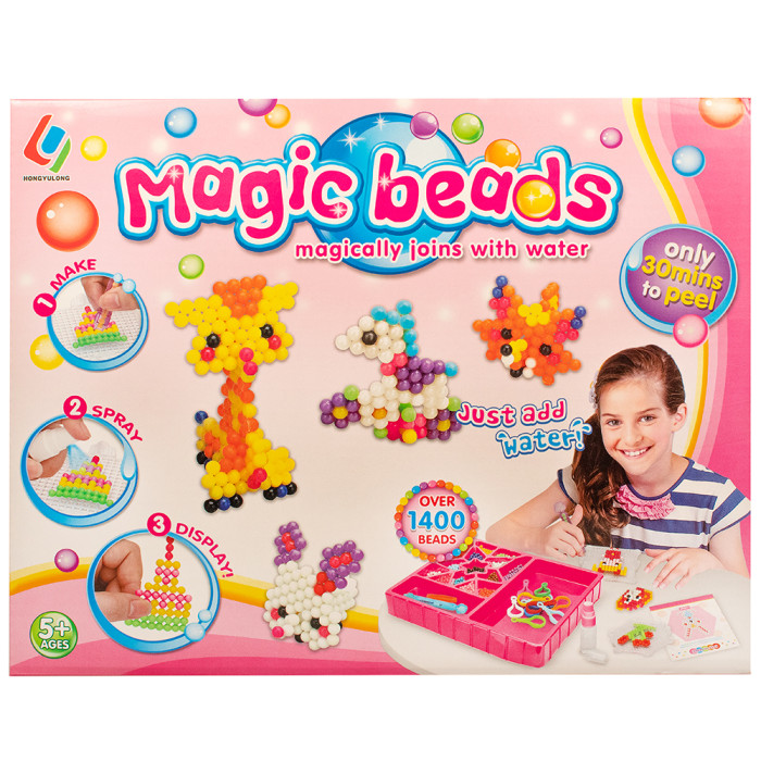 -Суть игры: бусинки, входящие в комплект, выкладываются на один из трафаретов из набора с помощью специальной ручки или пинцета. Бусинки можно выкладывать либо по схемам, приведенным в качестве примера на упаковке, либо самостоятельно придумывать те или иные фигуры. После того, как бусинки будут выложены, их необходимо спрыснуть водою с помощью пульверизатора, который входит в состав набора. Далее выждать не менее 30 минут, чтобы бусинки скрепились между собою и образовали устойчивую фигурку. После этого фигурку необходимо аккуратно извлечь.