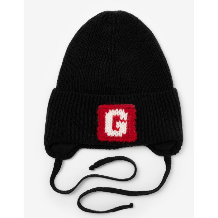 Мягкая, уютная, закрывающая уши мальчика шапка сделает прогулочный комплект завершенным. В оформлении модели использована контрастная вязаная нашивка с шрифтовым изображением.