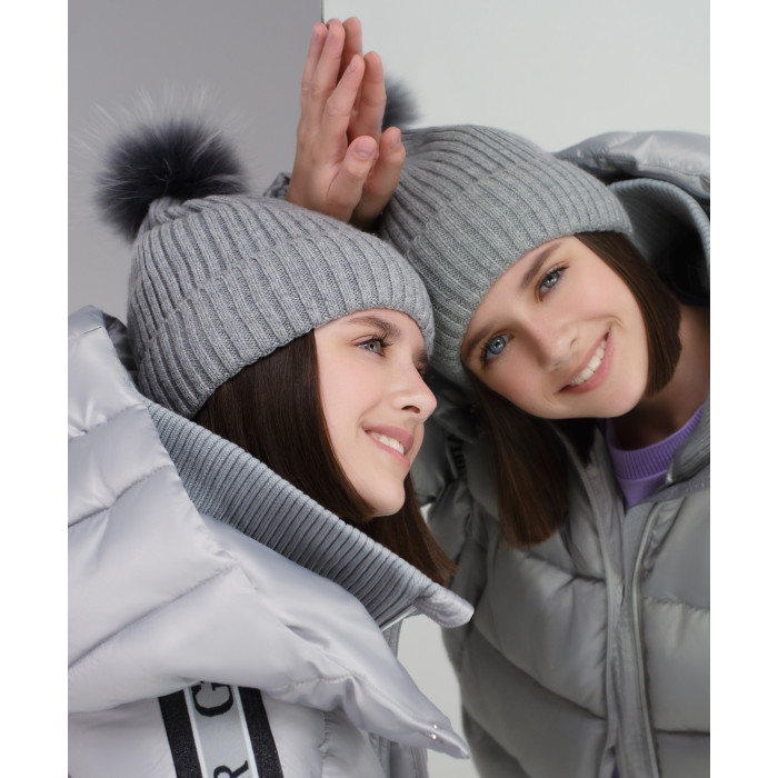 Gulliver Шапка вязаная с помпоном из меланжевой пряжи - уютный комфортный зимний вариант. Отстёгивающийся помпон из натурального меха енота придает модели завершенность. Подкладка из флиса гарантирует тепло, приятные тактильные ощущения, защиту от продувания.