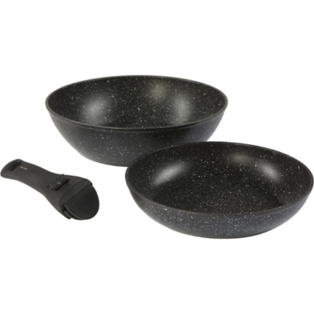 | Состав набора | сковорода 26 см - 1 шт, сковорода 22 см - 1 шт; ручка - 1 шт |