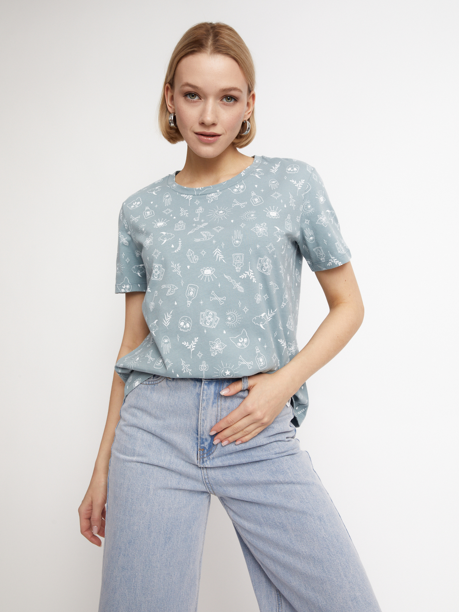 Женская футболка из хлопка с милым магическим принтом прекрасно дополнит ваш повседневный образ, или станет отличным выбором для комфортного спортивного образа для фитнеса и тренировок.