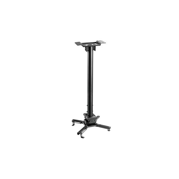 Потолочный кронштейн для проектора. Максимальная нагрузка до 35 кг. Угол наклона +/-20°, поворот +/-8°, вращение 360°. Высота штанги штанги от 600 до 900 мм. Максимальное расстояние между крепежными отверстиями до 470 мм (диаметр). Расстояние от стены 2,7 - 50,8 см. Кронштейн изготовлен из алюминия (сталь холодного проката), покрытие эпоксидным порошком для защиты от царапин.