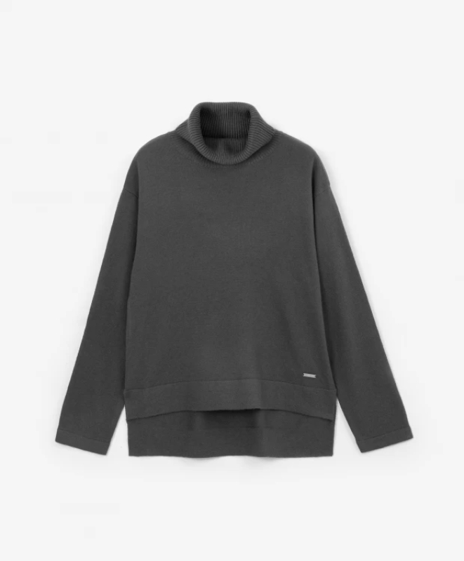 Серая вязаная водолазка - базовый предмет зимнего гардероба. Минималистичный дизайн, построенный на модном современном объеме с заниженной линией спинки, делает водолазку универсальным дополнением любого образа. Многокомпонентный состав пряжи с содержанием шерсти создает тепло, уют, приятные тактильные ощущения.