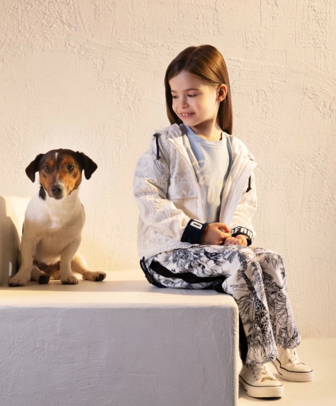 Легкая летняя ветровка выполнена из кружева с крупной активной структурой на тонкой хлопковой подкладке, гарантирующей комфорт и приятные тактильные ощущения. В оформлении модели использована репсовая тесьма и контрастные детали: корды и геометрическая нашивка с шрифтовыми элементами, привносящие в модель динамику спортивного стиля.