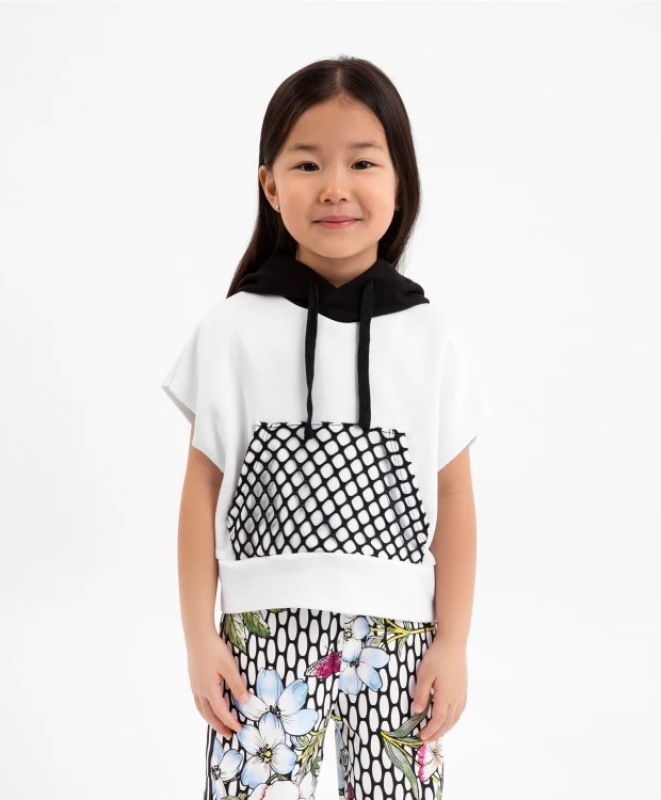 Жилет укороченный из футера с капюшоном белый Gulliver (110)