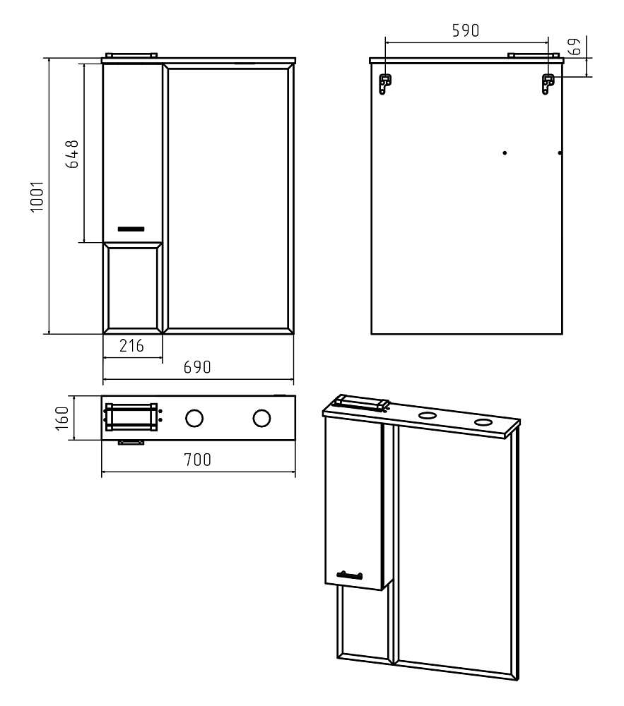 | Вид зеркала | зеркало-шкаф |