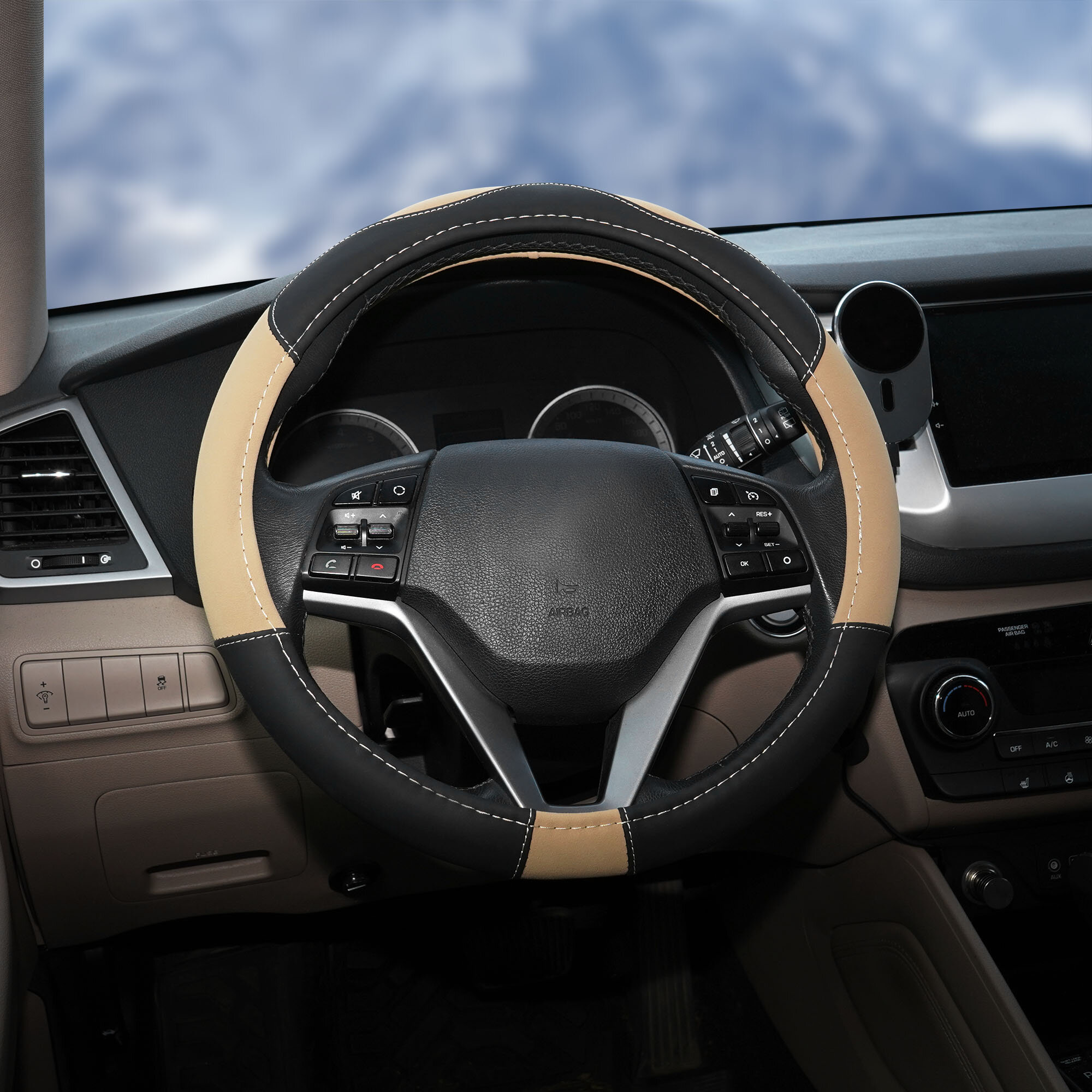 Оплетка предназначена для увеличения уровня комфорта при управлении автомобилем, а также для защиты обшивки руля от повреждений. Изделие имеет диаметр 38 см и размер М. Качественность и гарантию долгосрочного использования обеспечивает состав оплетки из иск. кожи и замшевых вставок. Цвет изделия черный с элементами песочного оттенка.
