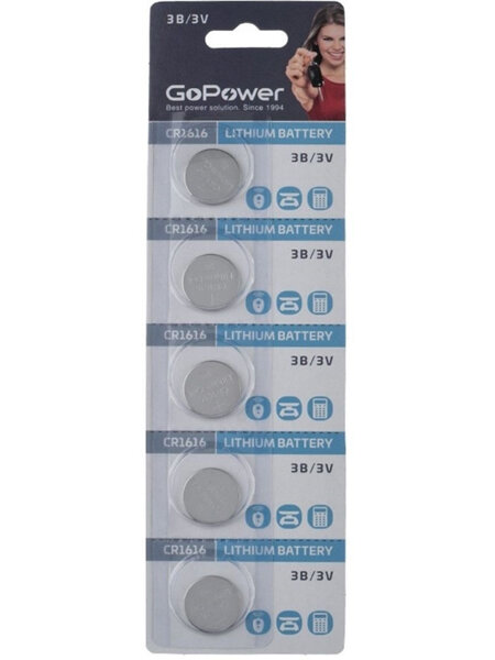 Батарейка GoPower 00-00023144 BL5 Lithium 3V (5/100/2000) CR1616