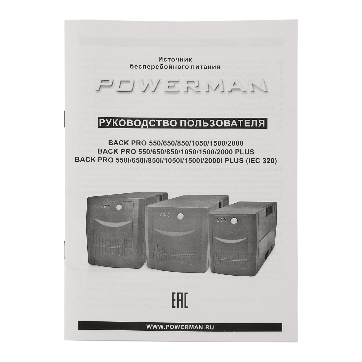 | Комплектация | ИБП POWERMAN Back Pro Plus / Руководство пользователя / Гарантийный талон / Кабель USB |