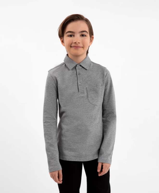 Поло из пике с длинным рукавом серое Gulliver (170)