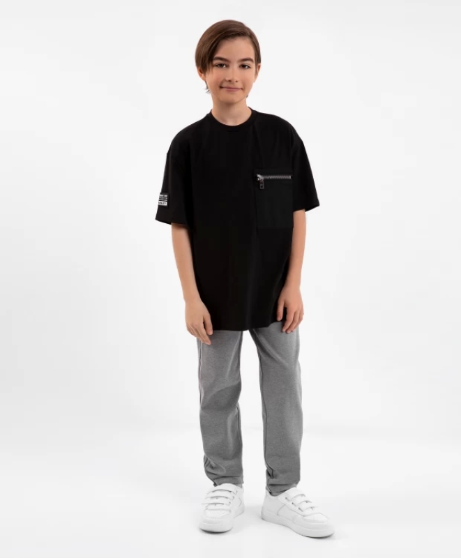 Серые трикотажные брюки из плотного формоустойчивого меланжевого джерси - стильный, удобный, практичный вариант! Дизайн модели, акцентирующий внимание на боковых швах, в которые интегрированы крупные пластиковые молнии, делает брюки модными и необычными. Молнии в цвет основного материала не создают контраста, что важно для учебных заведений, соблюдающих дресс-код, но они наделяют модель яркой индивидуальностью и брутальным характером, свойственным изделиям в спортивном стиле. Молнии могут расстегиваться с низа до верха, при этом боковой шов оснащен внутренней планкой, делающей эффект расстегнутых молний ложным. Расстегиваться полностью молнии могут лишь в нижней части, создавая впечатление высокого разреза. В оформлении брюк использованы функциональный шнур-утяжка с глянцевым силиконовым покрытием, а также небольшая брендированная металлическая табличка.