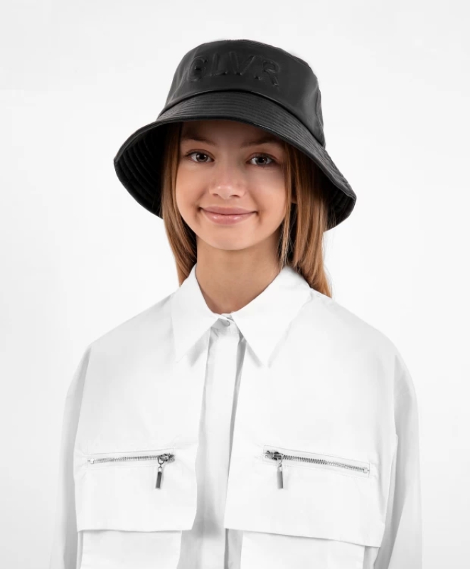 Черная панама из искусственной кожи - трендовый элемент школьного образа и не только. С пальто, курткой, жилетом, пиджаком, панама составит отличный демисезонный комплект, став его стильным завершением. В оформлении панамы использован неброский шрифтовой декор, выполненный в технике тиснения. Панама имеет хлопковую подкладку для комфортной эксплуатации вещи.