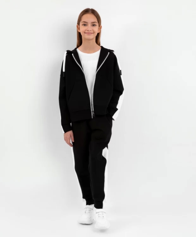 Трикотажные брюки из плотного формоустойчивого полотна - необходимая составляющая для занятий физкультурой и спортом. Брюки отлично держат форму, комфортны, неприхотливы в уходе. В сочетании с белой футболкой составляют стильный полноценный комплект, мотивирующий на движение. К брюкам прилагается удобная хлопковая сумка-мешок для аккуратного хранения физкультурной формы до и после занятий. Глянцевый шрифтовой принт на сумке придает всему набору концептуальность и завершенность, а также делает его отличным подарком мальчику или девочке в преддверии учебного года.