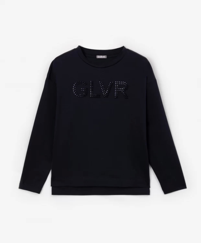 Синяя футболка с длинным рукавом - основа школьного гардероба. Мягкая, комфортная, не сковывающая движений, футболка прямой свободной формы со спущенным плечом станет прекрасной составляющей повседневных комплектов. Стильный шрифтовой декор, выполненный в технике тиснения с деликатным поверхностным блеском добавляет модели шарм, делает ее образцом минимализма в дизайне трикотажных изделий.
