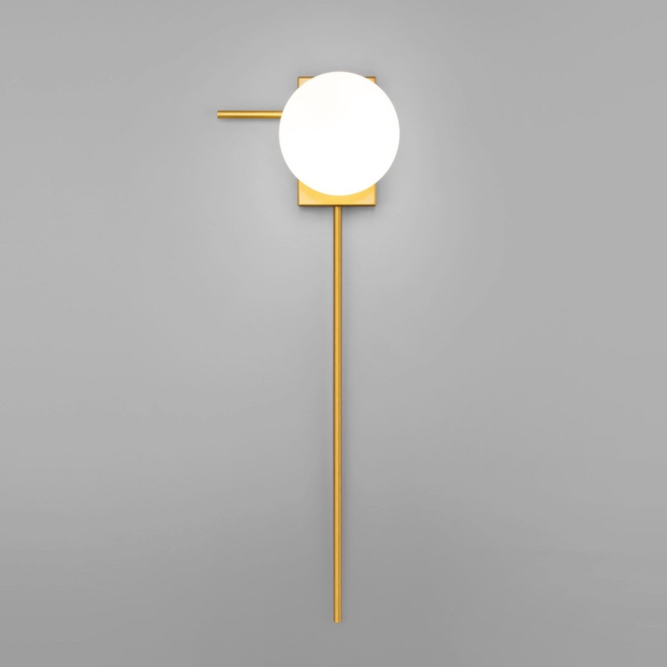 Настенный светильник в современном стиле 40033/1 золото создаст качественное дополнительное освещение и станет эффектным дополнением к основному источнику света. Благодаря белому стеклянному плафону бра создает мягкое рассеянное свечение, подходящее для комфортного чтения книг в вечернее время.В качестве источника света используются сменные лампы с цоколем E14. Патрон рассчитан на максимальную мощность ламп накаливания 60 Вт. Корпус светильника выполнен из высококачественного и прочного металла с надежным покрытием. Бра легко устанавливается при помощи крепежной планки, которая обеспечивает надежную фиксацию светильника на стене.