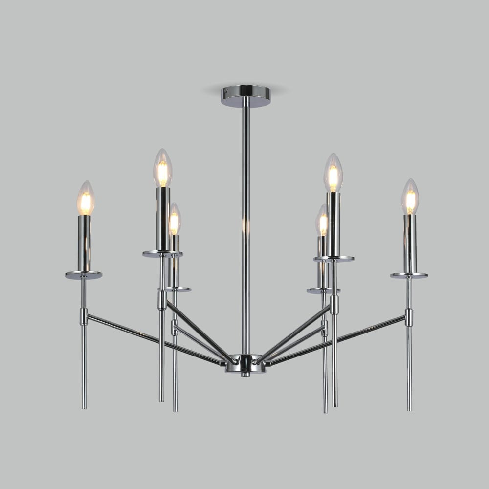 Люстра Anders в цвете хром- это острое сочетание трендовой геометрии и концепции традиционной люстры-канделябра. Шесть открытых источников света без привычных для нас стеклянных плафонов подчеркивают четкость линий модели и оригинальность задумки. В светильнике используются сменные лампы с цоколем E14. Благодаря гармоничному сочетанию классических и современных дизайн-приемов потолочный светильник Anders создаст запоминающийся визуальный образ в любом интерьере гостиной, спальни или кухни.
