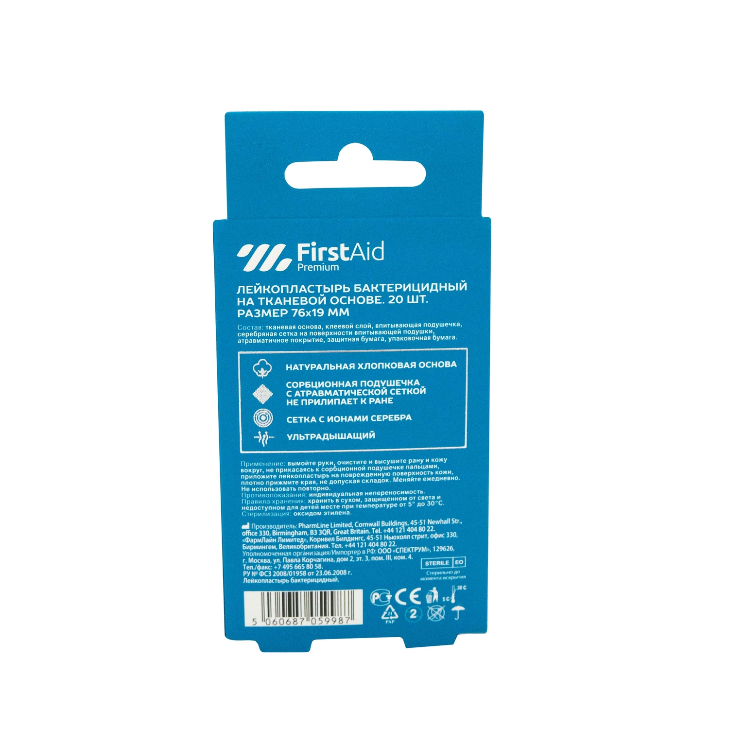 Ферстэйд премиум лейкопластырь бактерицидный с cеребром тканевая основа №20 PharmLineLimited