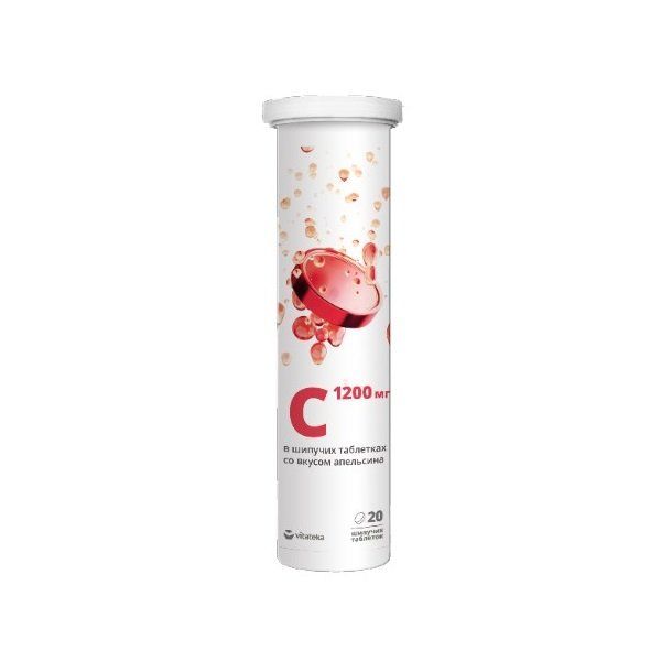 Биологически активная добавка к пище Витамин С 1200 мг vitateka в форме шипучих таблеток со вкусом апельсина рекомендуется в качестве биологически активной добавки к пище - дополнительного источника витамина C.Витамин С (L-аскорбиновая кислота) – водорастворимый витамин, обладает иммуномодулирующим, общеукрепляющим и антиоксидантным свойствами. В естественном виде содержится в цитрусовых, шиповнике, листовых зеленых овощах, цветной и квашенной капусте. В организме человека не синтезируется, поэтому должен регулярно поступать с пищей или добавками.Способствует повышению сопротивляемости организма в периоды активного распространения вирусов. Поддерживает иммунную систему, увеличивая выработку интерферона и участвуя в производстве антител. L-аскорбиновая кислота участвует в синтезе коллагена, L-карнитина, серотонина и желчных кислот, способствует усвоению железа. Поддерживает в здоровом состоянии кровеносные сосуды, обеспечивая более высокую проницаемость капилляров, улучшает состояние кожи и костной ткани. Витамин С крайне неустойчив во внешней среде и быстро разрушается при нагревании.