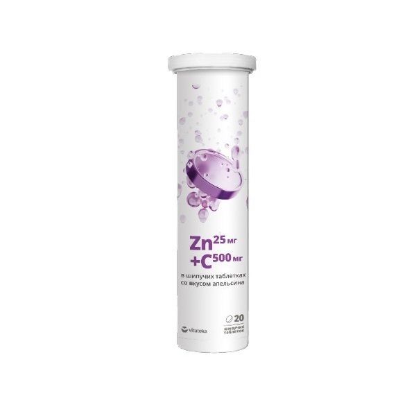 Витамин С+Цинк апельсиновые Vitateka/Витатека таблетки шипучие 500мг+25мг 20шт Мирролла ООО