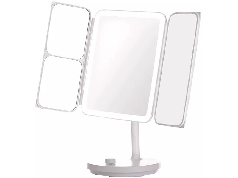 Косметическое зеркало с подсветкой Xiaomi Jordan&Judy Makeup Mirror (NV536)раскладная конструкция Зеркало косметическое с подсветкой Xiaomi Jordan&Judy Makeup Mirror (NV536) имеет раскладную конструкцию для удобства использования. Основная часть имеет диагональ 27 см, а по бокам находятся две дополнительных зеркальных поверхности с увеличением в два и пять раз соответственно. Угол наклона зеркала можно регулировать в пределах 0-180° благодаря шарнирной конструкции.естественная цветопередача Светодиодные элементы передают оттенки в максимально естественной цветовой гамме, что позволяет лучше видеть, что происходит на коже в процессе нанесения макияжа. Сенсорная кнопка на корпусе позволяет регулировать яркость и температуру свечения.автономная работа Зеркало оснащено встроенным аккумулятором емкостью 2000 мАч, который заряжается за 3 часа. Одного заряда достаточно для 210 минут автономной работы.складная конструкция Зеркало имеет складные створки, позволяющие размещать его в удобном и безопасном месте. Благодаря этому пространство на столе остается свободным. Зеркало обеспечивает 3D охват, что позволяет видеть себя со всех сторон. Также устройство имеет три режима освещения: холодный белый свет, стандартный естественный и теплый.Удобный дизайн, высокое качество и доступная цена делают зеркало косметическое раскладной с подсветкой Xiaomi Jordan&Judy Makeup Mirror (NV536) отличным выбором для использования дома или в сфере профессионального макияжа. Оформить заказ в интернет-магазине Nice Case можно разными способами, оплатить наличными или безналичными, а также выбрать удобный для себя способ доставки.