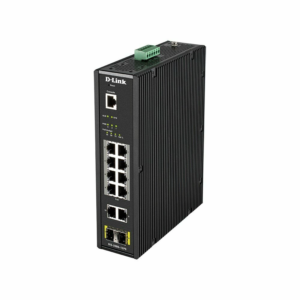 DIS-200G-12PS/A2A Промышленный управляемый L2 коммутатор с 10 портами 10/100/1000Base-T и 2 портами 1000Base-X SFP (8 портов PoE 802.3af/at, PoE-бюджет до 240 Вт) (464560)