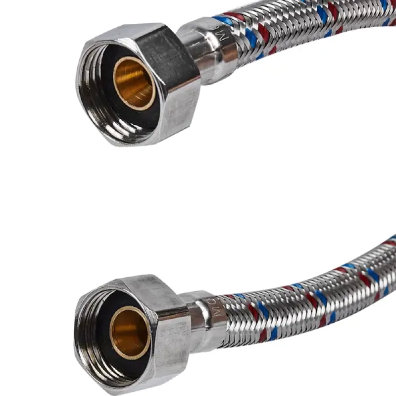 **Гибкая подводка для воды ДТРД** с внутренней и внутренней резьбой подходит для присоединения сантехники, бытовой техники, отопительных приборов к водопроводным трубам. Шланг прочен и гибок, выдерживает давление и гидроудары внутри системы, подходит для монтажа даже в самых труднодоступных местах. Крепления диаметром ½ дюйма совместимы с большинством разъемов на стиральных машинах, водонагревателях, мойках. Внутри находится резиновый шланг, снаружи изделие покрыто металлической оплеткой, надежно защищающей от повреждений.