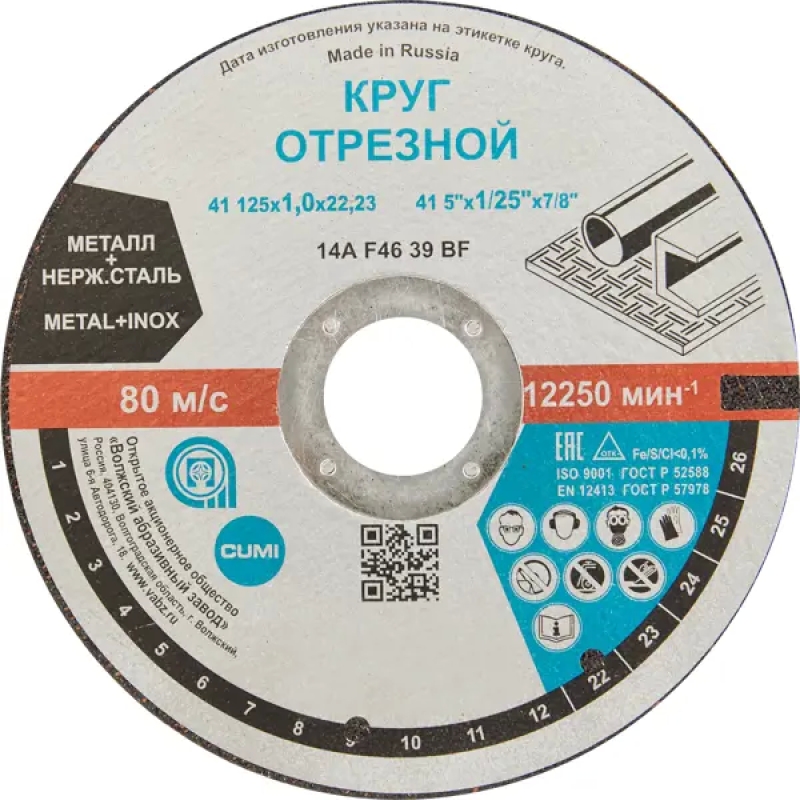 Диск отрезной по стали Волжский Абразивный Завод 125x22.2x1 мм