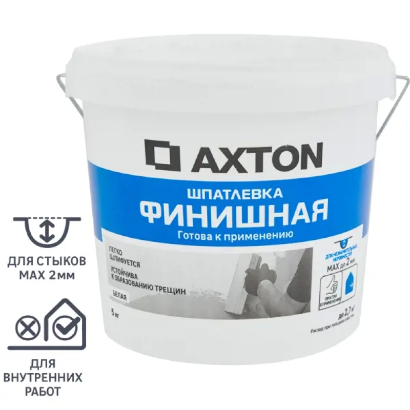 **Шпатлевка Axton** - белый пастообразный материал для финишного выравнивания поверхностей из ГВЛ, ГКЛ, цементной и гипсовой штукатурки, в сухих помещениях перед покраской, поклейкой обоев и нанесением декоративных покрытий.