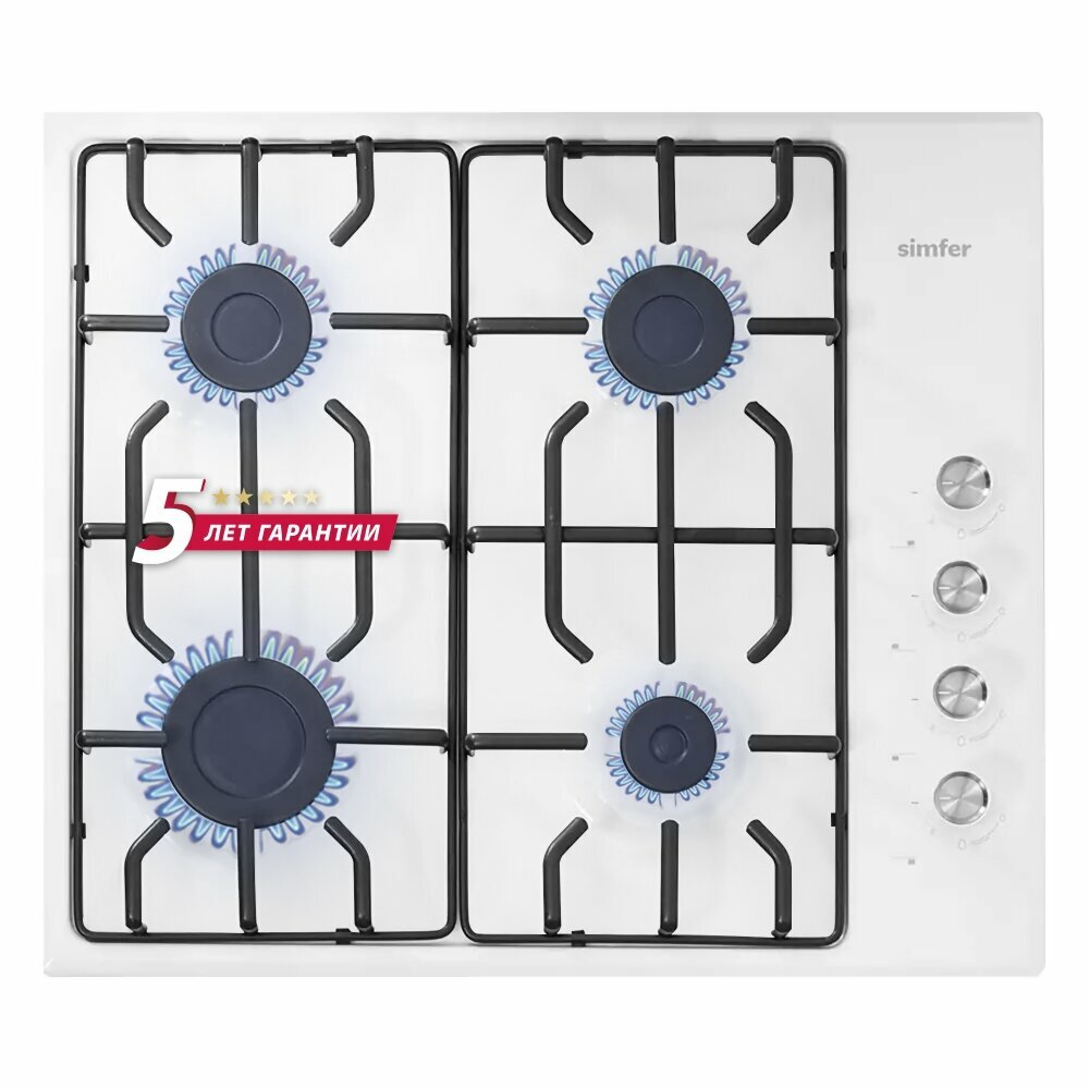 Газовая варочная панель Simfer H60Q40W570, решётки LAMA, газконтроль, автоподжиг