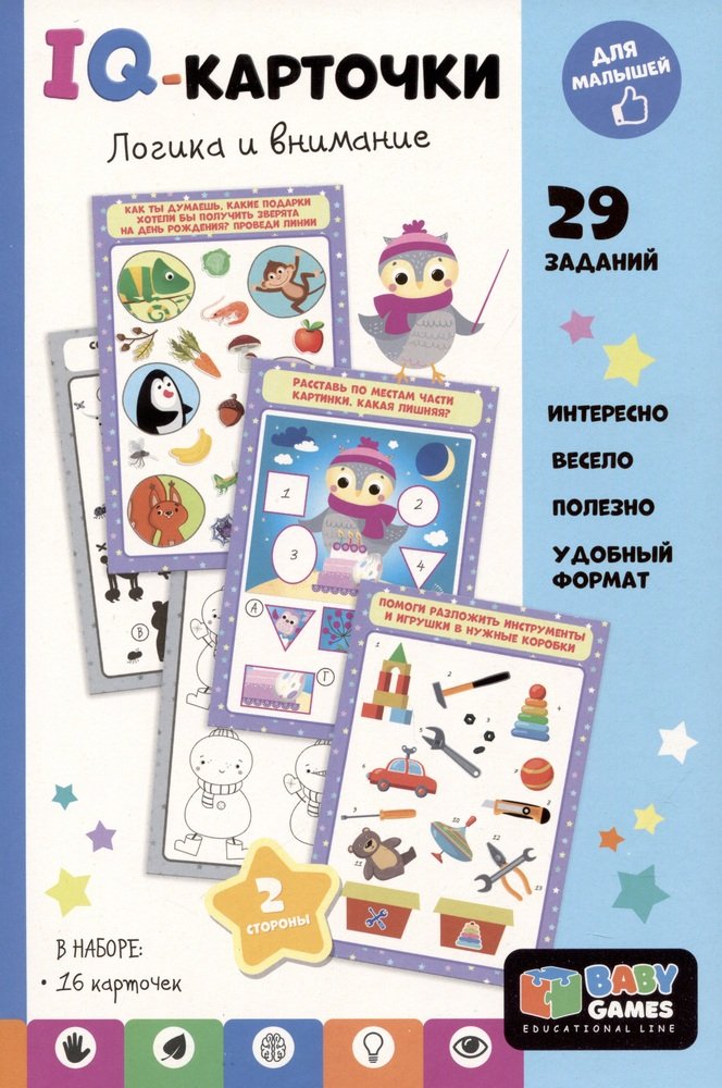 IQ-карточки с любимыми героями и развивающими заданиями научат ребенка сравнивать и различать, находить лишнее, определять закономерность и многому другому!