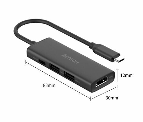 Разветвитель USB-C A4Tech DST-40C серый (размер: 83х12х30 мм)