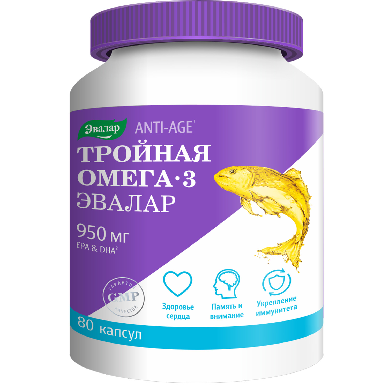 Эвалар Тройная Омега-3 950мг капс. 1300мг №80