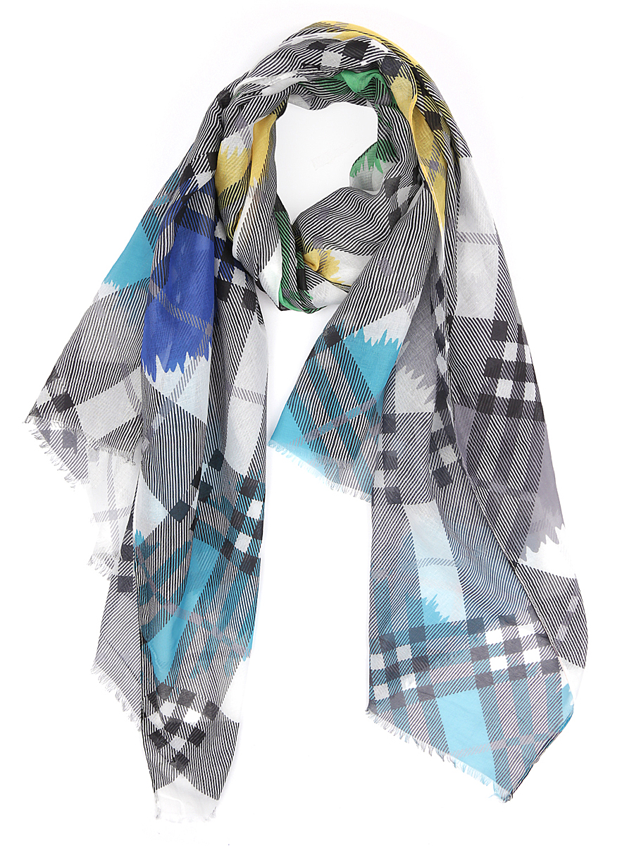 Стильный шарф FABRETTI из качественного полиэстера и обладает приятной текстурой. Изделие выполнено в черно-белой гамме, дополненной яркими акцентами в розовом, синем и желтом оттенках. В качестве декора выбран узорклетка. Шарф дарит ощущение комфорта, легко драпируется, долго сохранит форму и цвет. Концы украшены аккуратными ресничками.