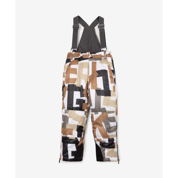 Теплый зимний полукомбинезон на синтепоне выполнен из плотной матовой плащовки, что делает его добротным, практичным, идеально подходящим для продолжительных и активных прогулок. Интересный дизайн модели с динамичной цветной графикой отличает его от однотонных базовых вариантов, позволяя формировать яркие нестандартные образы мальчика. Молнии в нижней части брюк обеспечивают возможность носить обувь разной высоты и объема. Эластичные лямки позволяют регулировать длину и посадку изделия. В оформлении модели использован брендированный флажок, жаккардовая нашивка, светоотражающий принт.