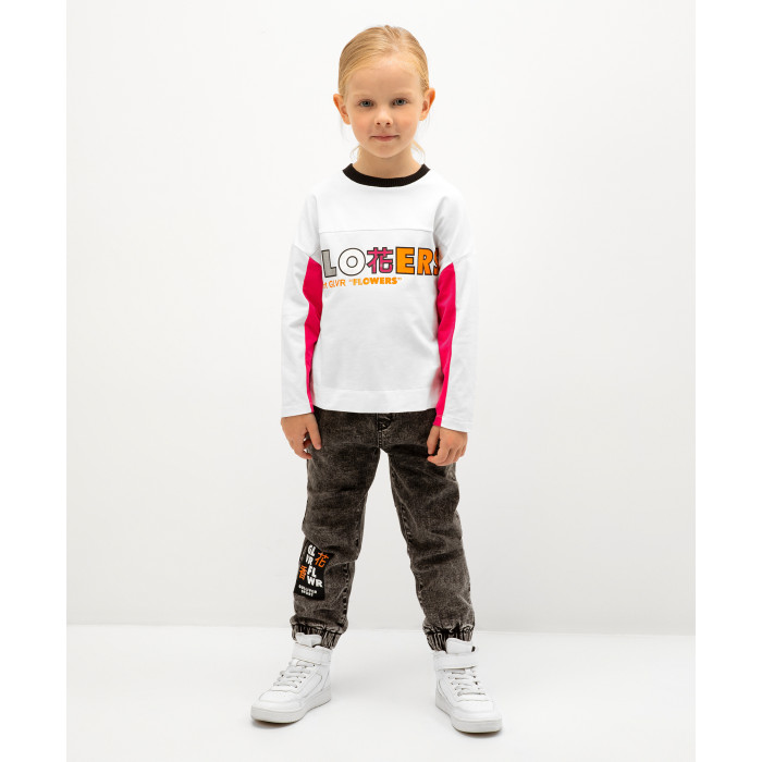 Джинсы на флисе - must have функционального прогулочного гардероба девочки. Выполненные из модного денима с красивой мраморной варкой, джинсы удобны, практичны, функциональны. Модная форма - джоггеры - гарантирует комфортную эксплуатацию изделия в дождливую погоду.