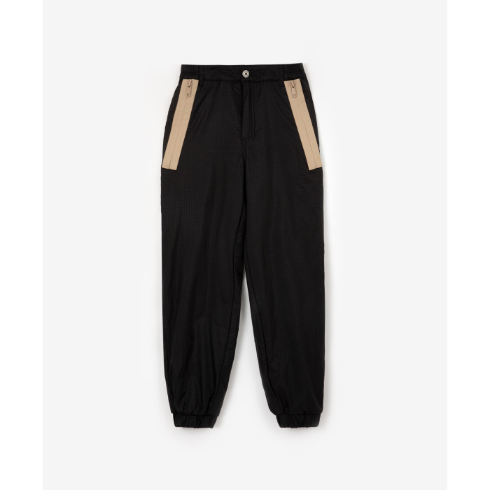 Зимние брюки на синтепоне выполнены из плотной матовой плащовки, гарантирующей практичность, износостойкость, простоту в уходе и эксплуатации. Конструктивное решение построено на членении деталей передней части, с усилением в коленной зоне дополнительным слоем. В оформлении модели использована репсовая тесьма. Молнии в боковых швах позволяют носить обувь разной высоты и объема.