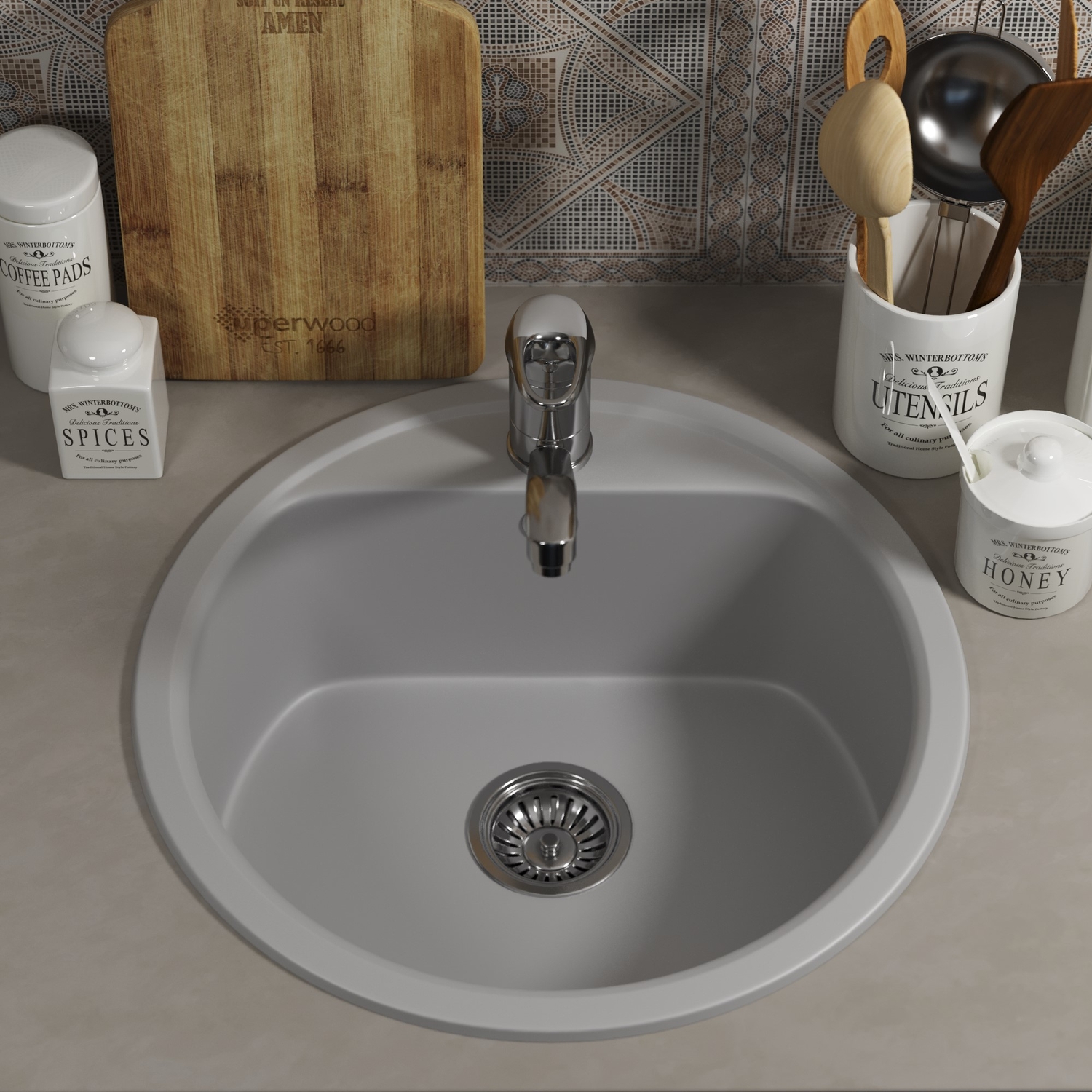 Круглая каменная мойка из кварцевого песка с отверстием для смесителя и увеличенной чашей от бренда Uperwood.