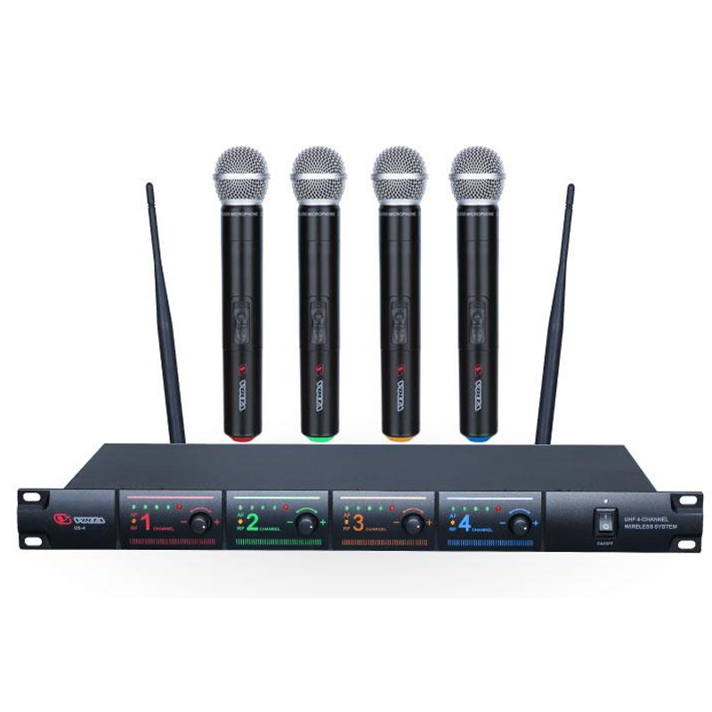 Беспроводная микрофонная система UHF-диапазона с четырьмя ручными микрофонами