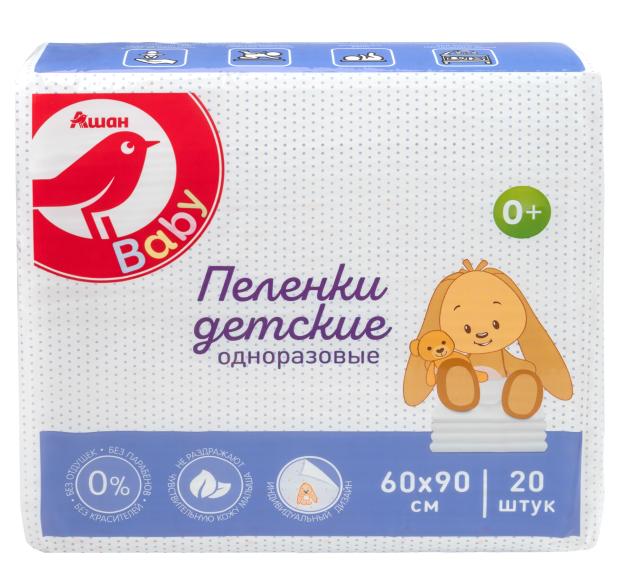 Пеленки одноразовые для детей АШАН Красная птица 60х90 см, 20 шт