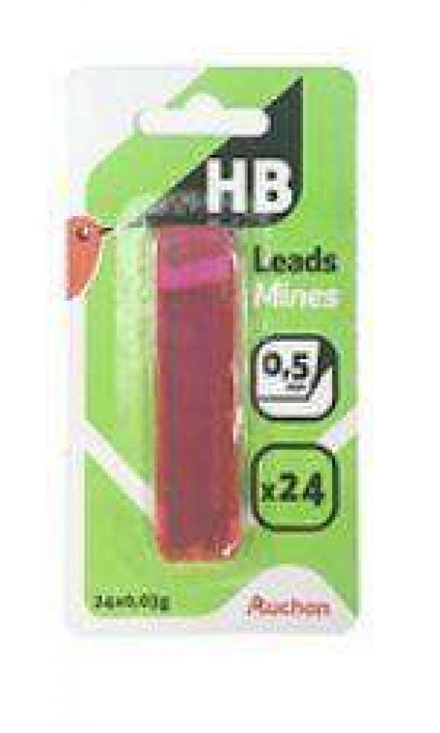 Набор грифелей АШАН Красная птица для механического карандаша 0,5 мм твердость HB, 24 шт